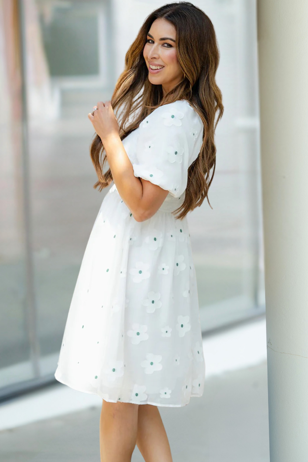 Subtle Floral Puff Sleeve Dress