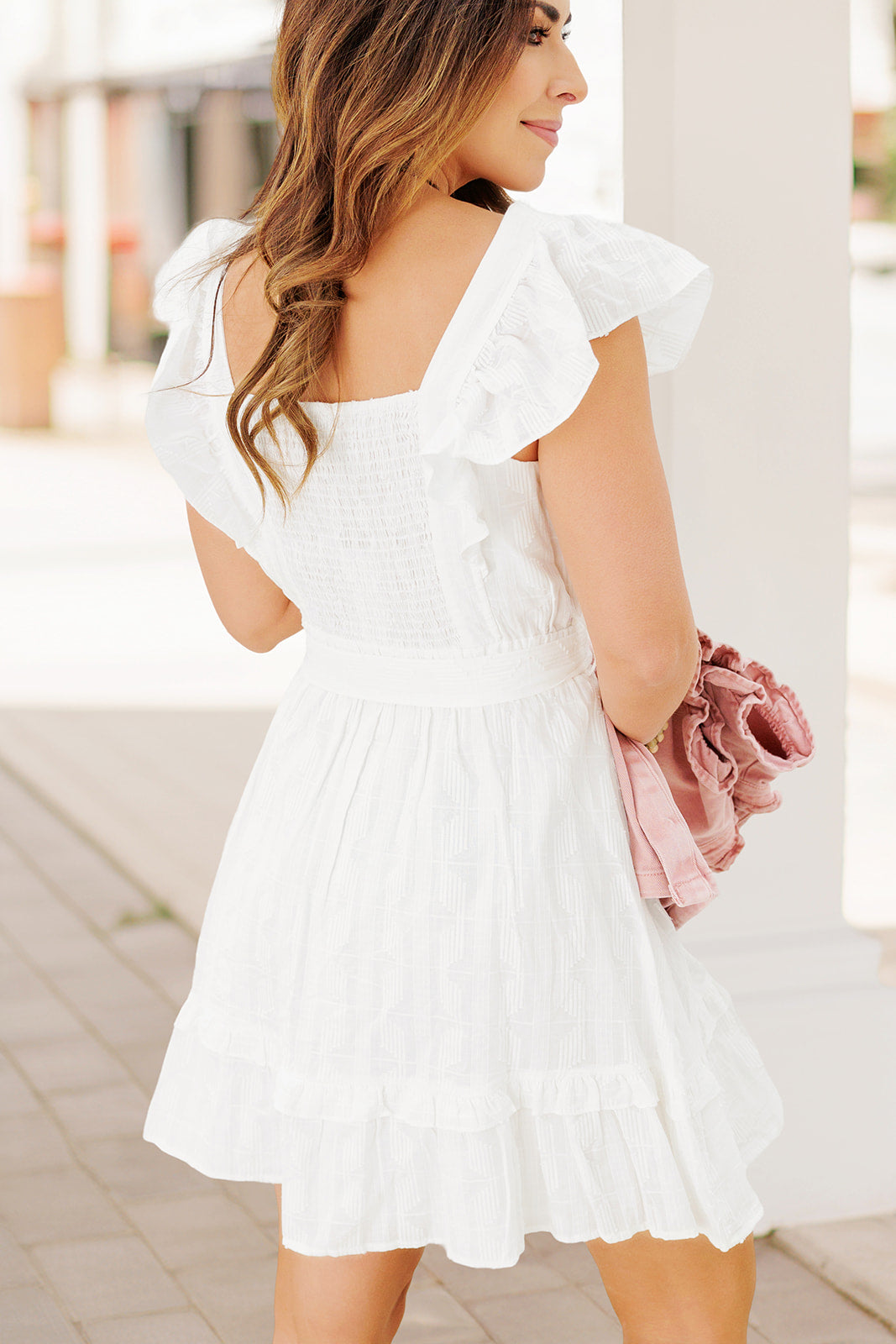 Basic but stunning and perfect for every event or occasion! The subtle raised print gives this a unique and chic feel. The flowy fit, ruffle accents, and tie waist make it flattering on any body shape or size! Wear it alone with a statement necklace for the summer, or pair with a denim jacket or cardigan and boots for the cooler months! We just know this one will become a staple piece in your wardrobe!