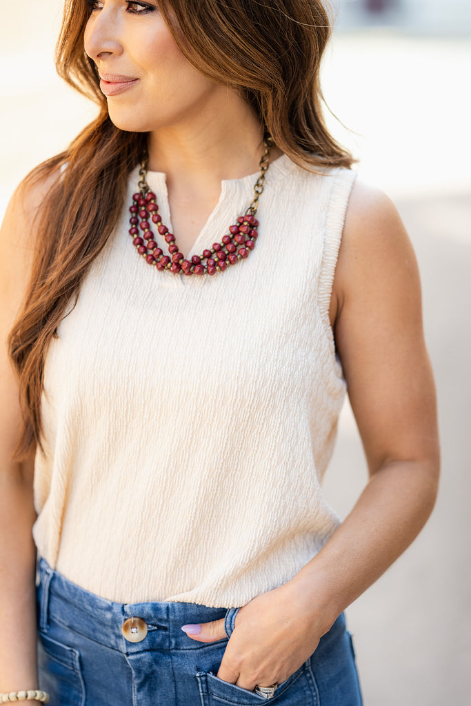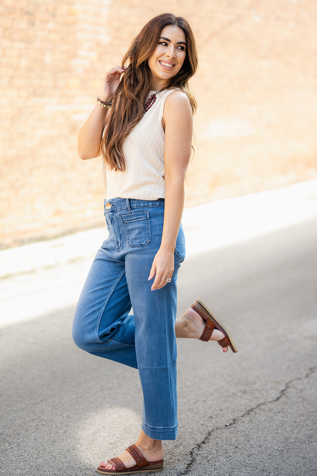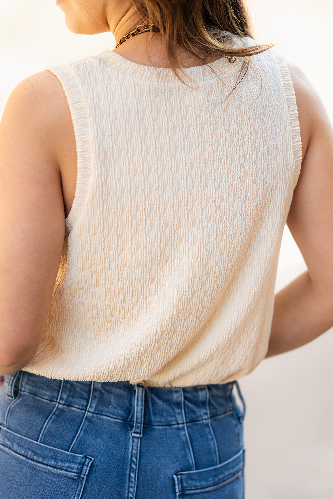 A simple soft and lightweight tank with a subtle texture that gives this such a unique vibe! Wear this as is in the warmer months or layer with a blazer, cardigan, or jacket in the cooler ones! We love that this can be dressed up or down for everyday wear!