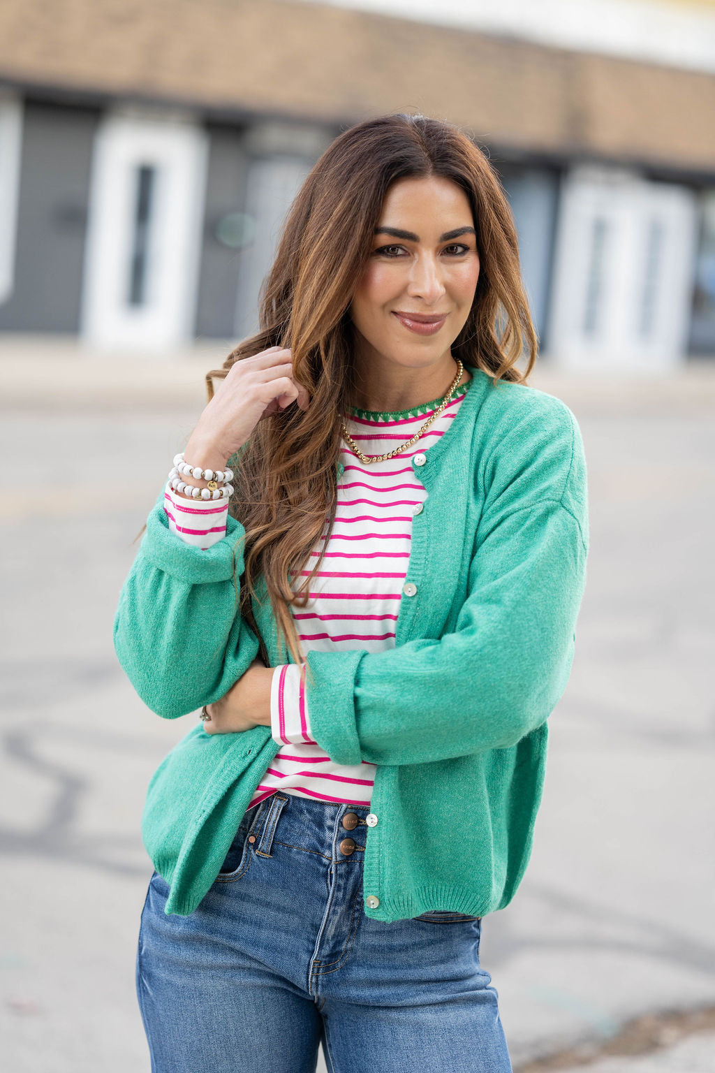 This cardigan is made for effortless layering and all-day comfort. Designed with a classic button-front and an easy, relaxed fit, it features a super-soft knit that feels light yet cozy. The clean silhouette makes it perfect for throwing on over tees, tanks, or dresses—while the fresh, airy color adds an instant soft touch to any outfit.