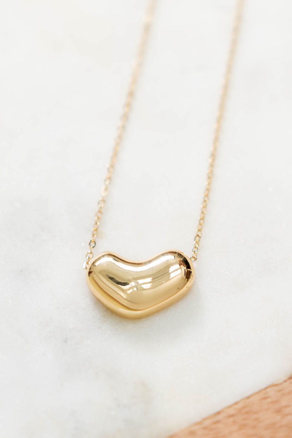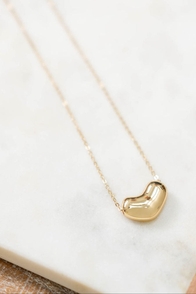 This necklace is a bold yet minimal statement piece. Featuring a smooth bean-shaped pendant on a delicate chain, it blends modern design with effortless charm. Perfect for layering or wearing solo, this necklace adds a touch of chic whimsy to any outfit.