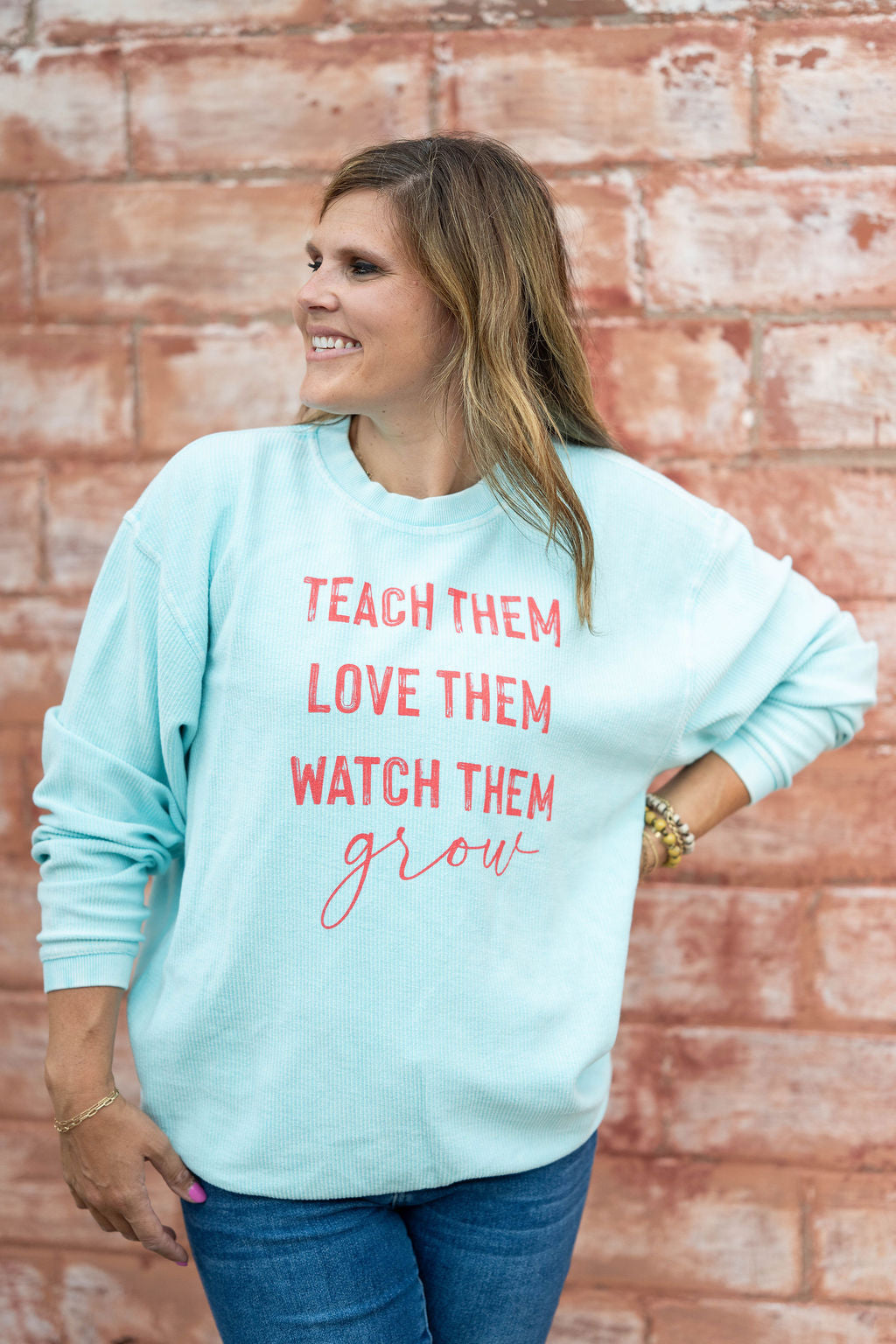 Crewnecks are a staple for every girls wardrobe, so stock up while you can! Cute and comfortable, these graphic crewnecks look great with shorts and flipflops or jeans and boots! This crewneck is elevated with a ribbed texture to really set it apart from the rest!