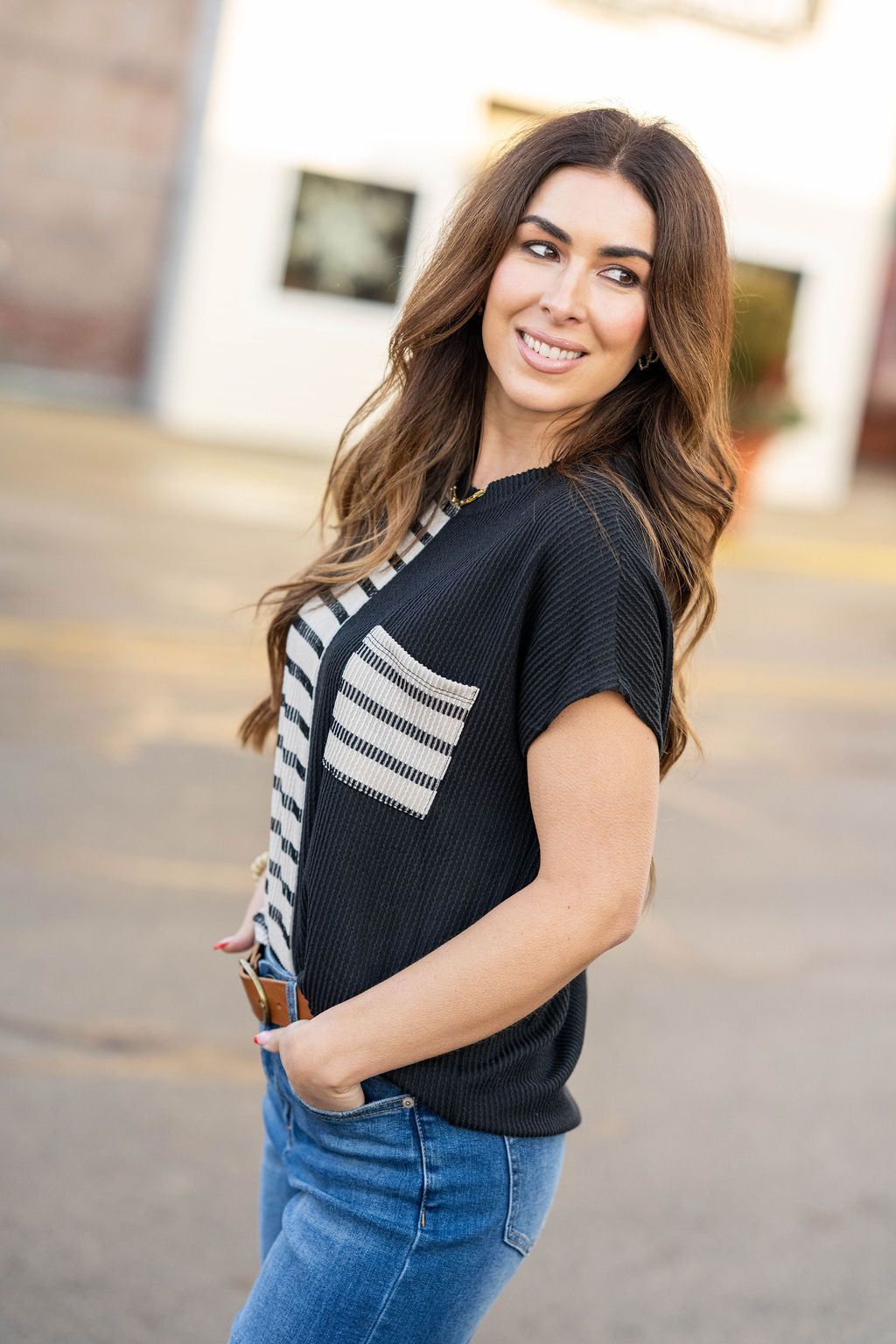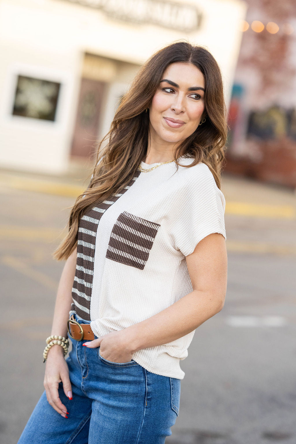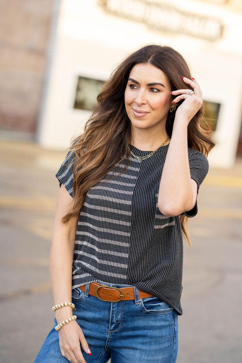 An easy tee with a little something extra. This short-sleeve top features a mix of stripe and texture details for a casual look that feels elevated. Designed with a relaxed fit and soft fabric, it’s perfect for everyday wear—easy to style and easy to love.