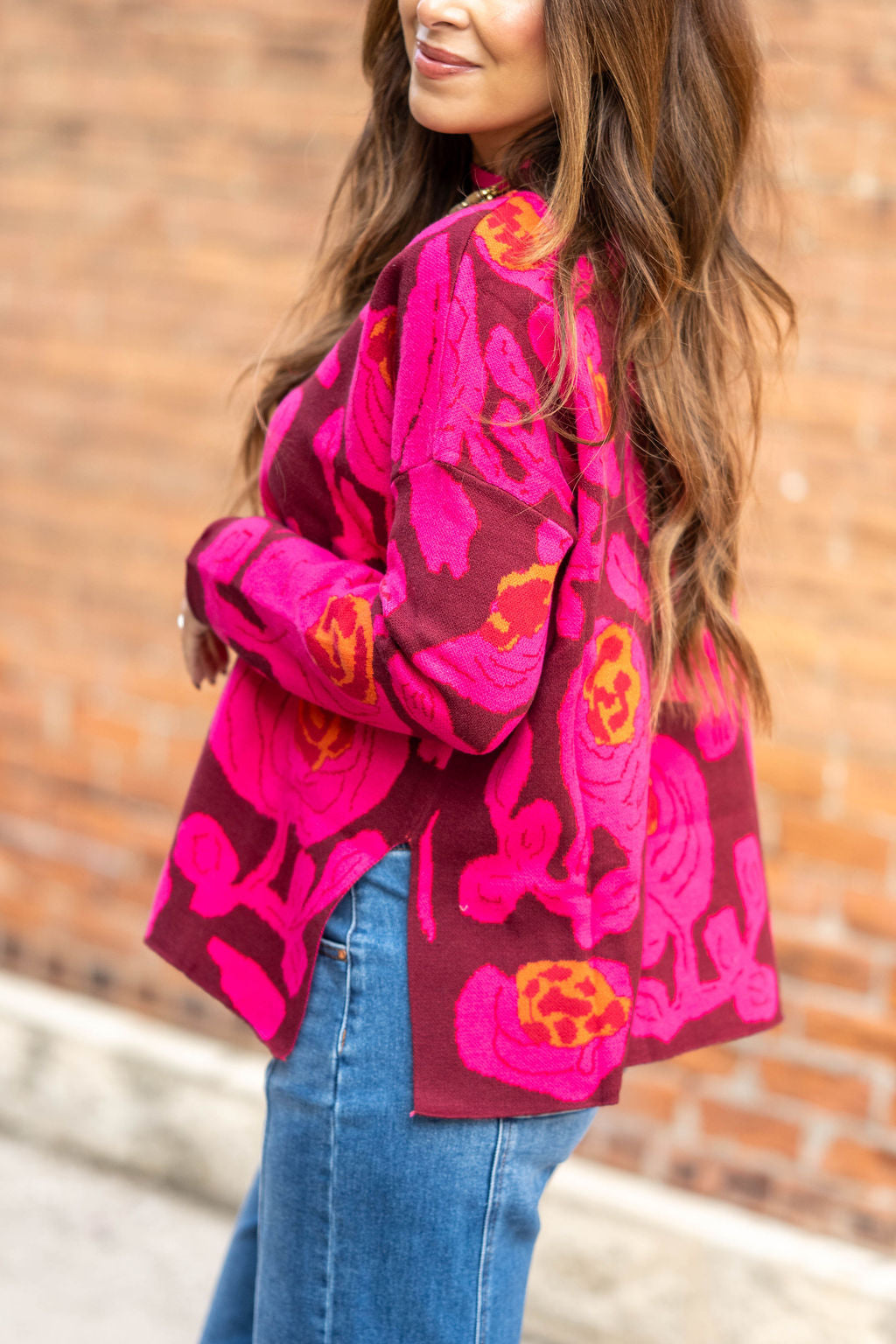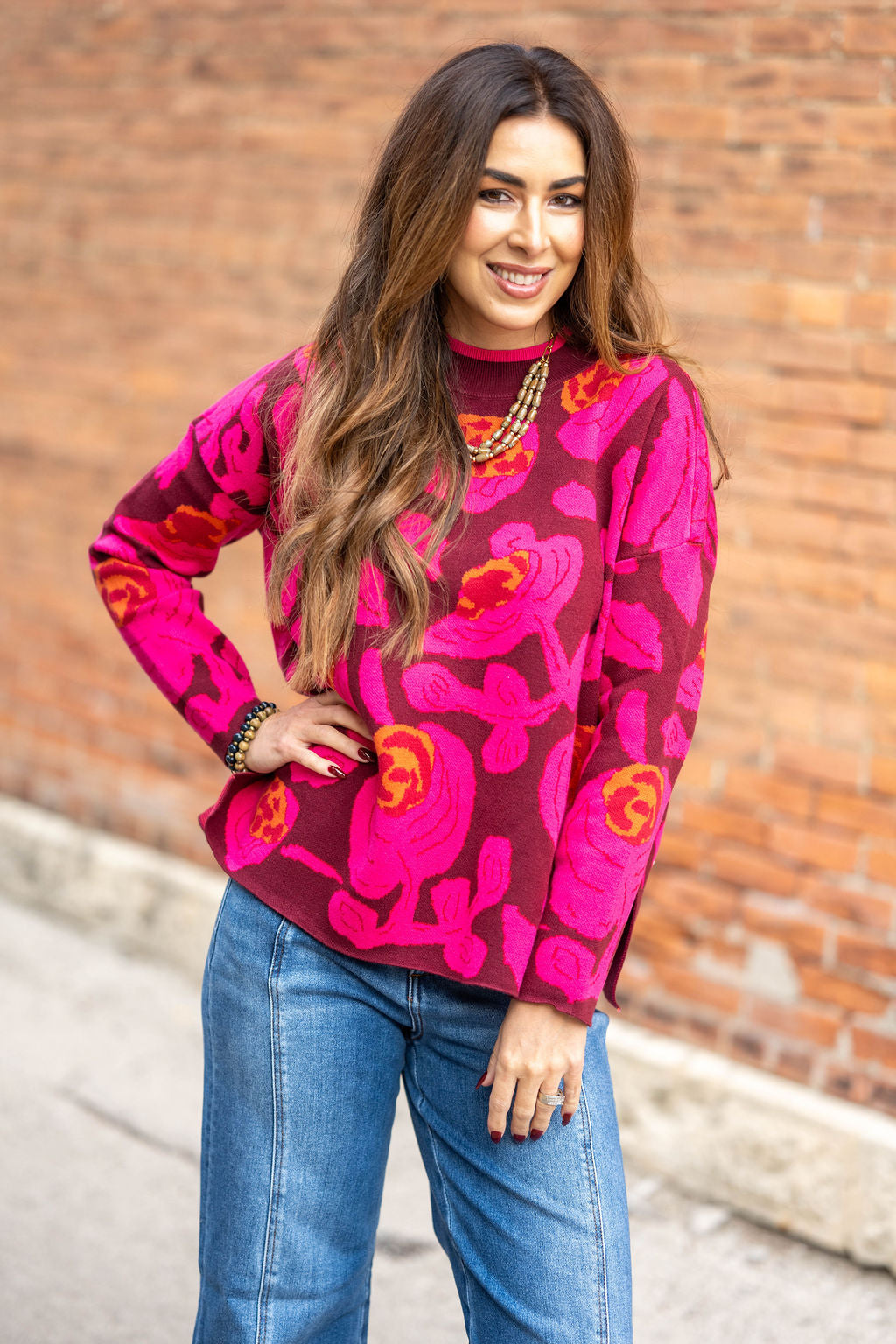 Turn heads with this vibrant floral sweater that blends comfort and confidence in one look. Its soft knit feel and relaxed fit make it perfect for pairing with denim or layering under a jacket for an effortlessly chic statement.