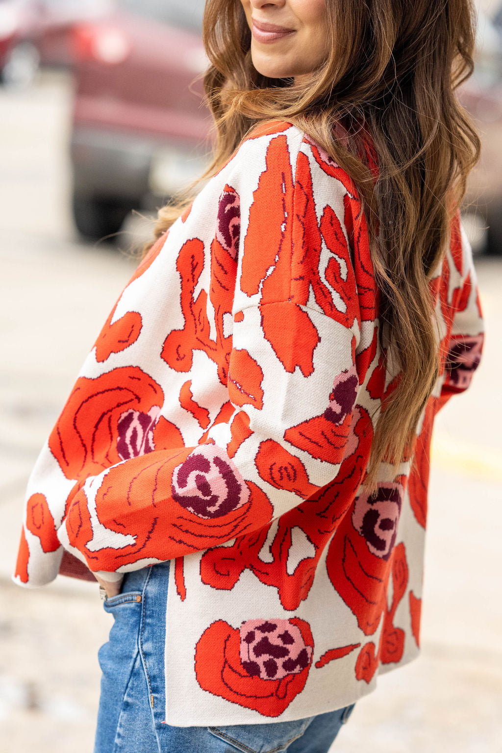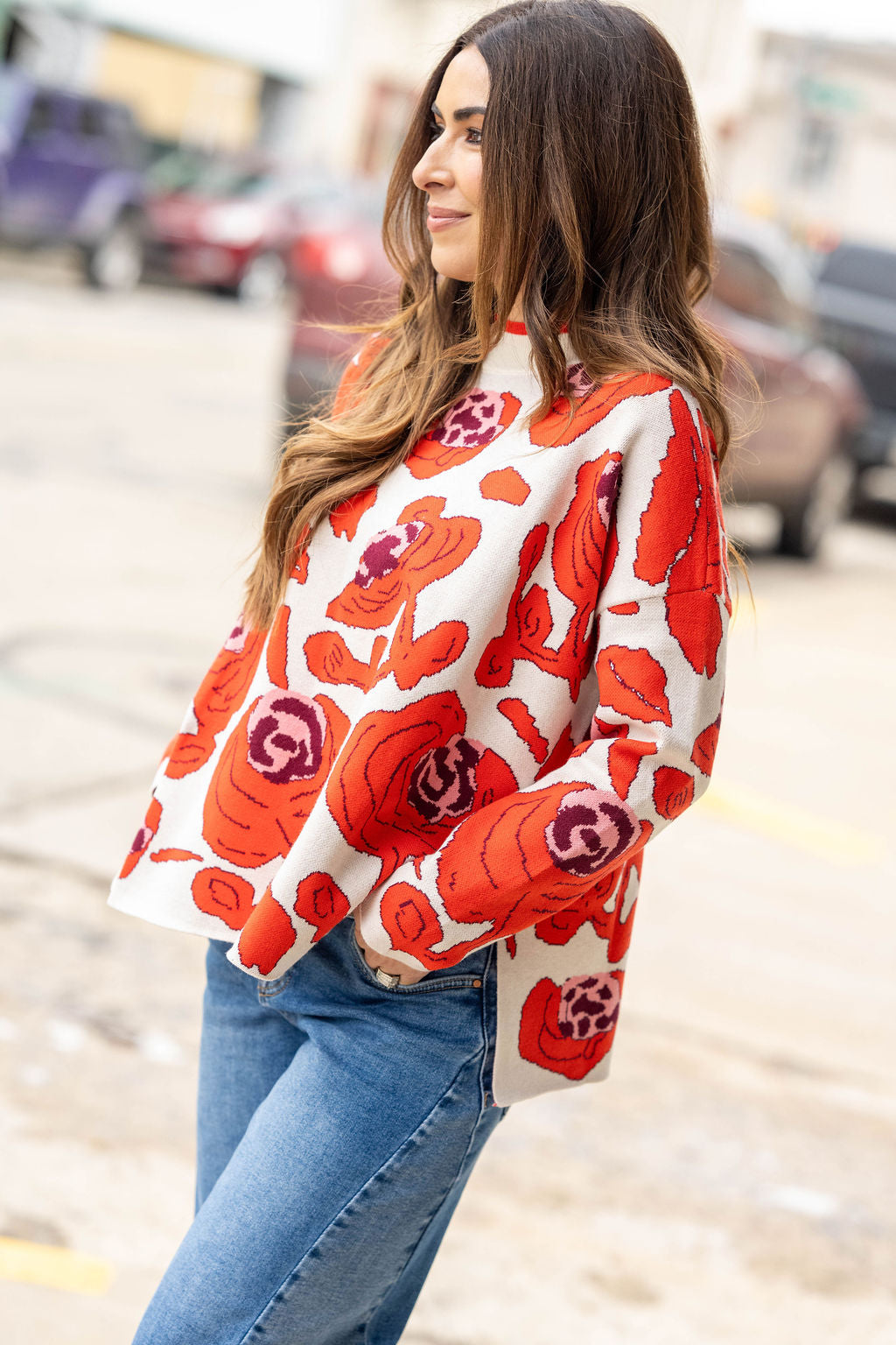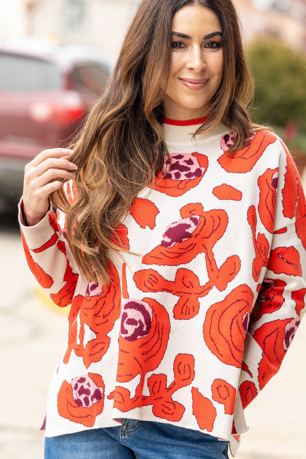 Turn heads with this vibrant floral sweater that blends comfort and confidence in one look. Its soft knit feel and relaxed fit make it perfect for pairing with denim or layering under a jacket for an effortlessly chic statement.