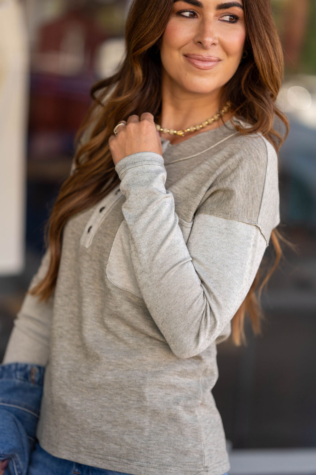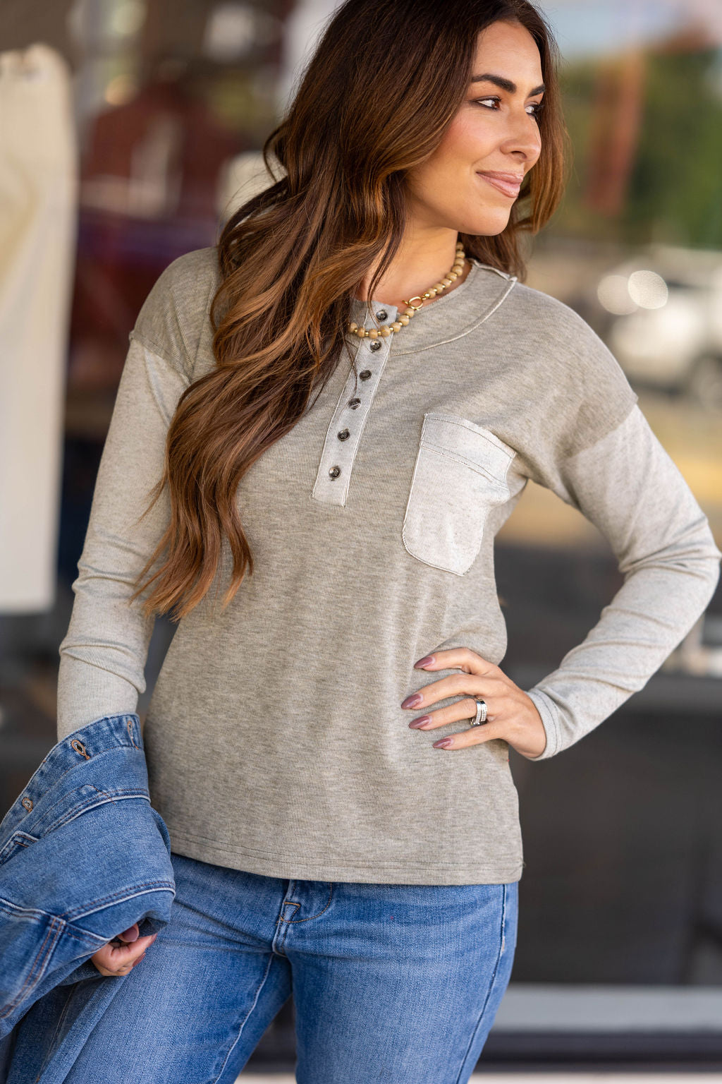 Simple, soft, and endlessly wearable, the Everyday Henley is that effortless staple you’ll keep reaching for. Featuring a flattering button neckline and an easy fit, it’s perfect for layering under jackets or styling solo year-round.
