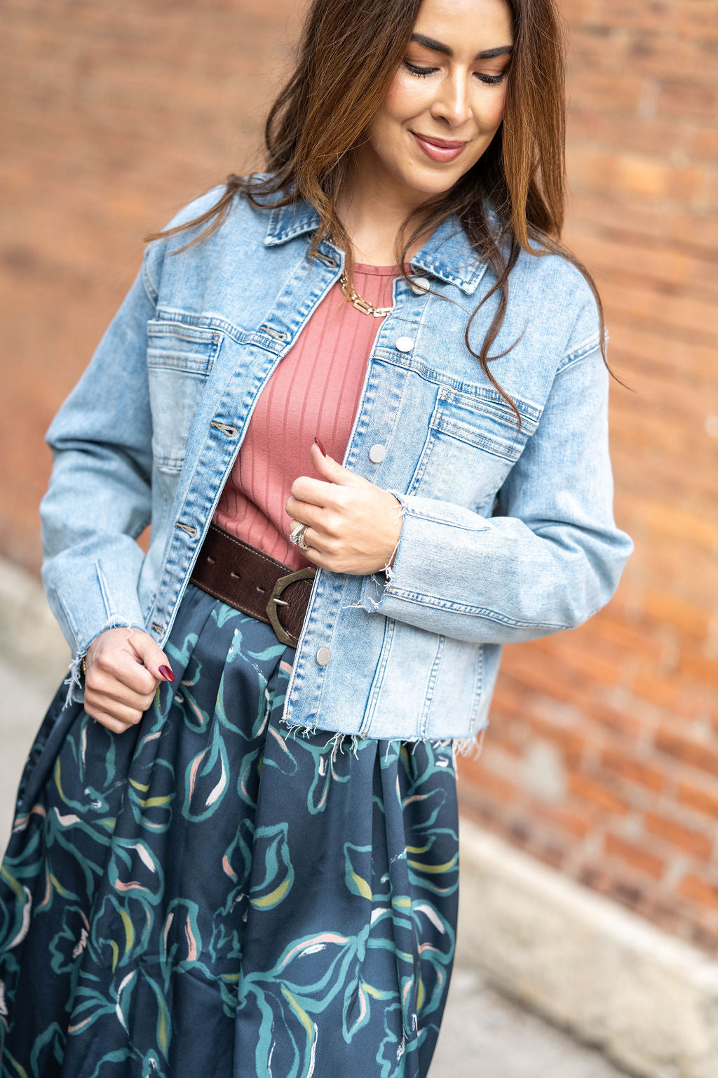 Cropped silhouette pairs perfectly with dresses or high-rise denim