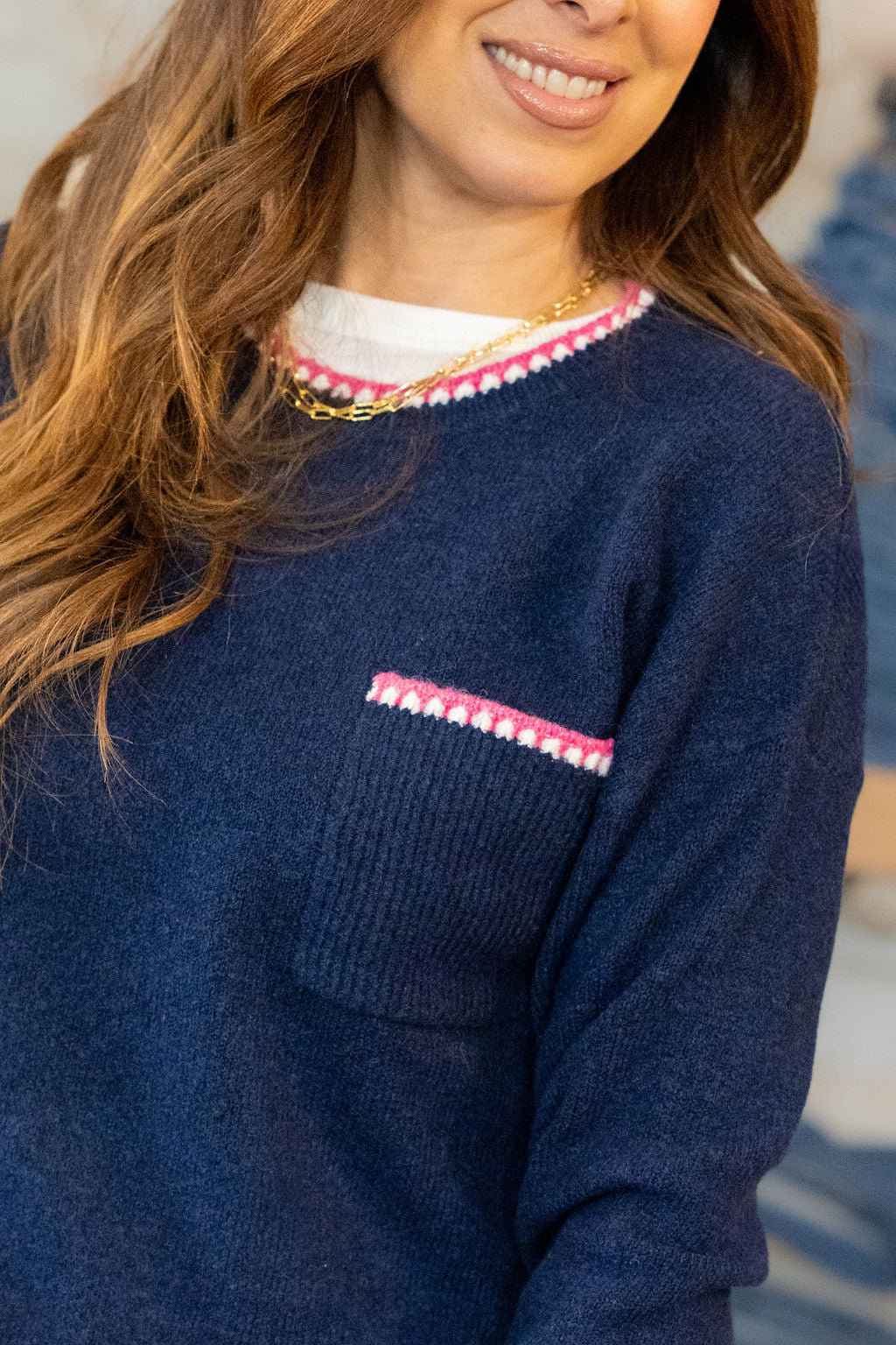 A classic cozy knit with just the right amount of charm. This soft sweater features subtle contrast stitching that adds a playful pop while keeping the look effortless and wearable.