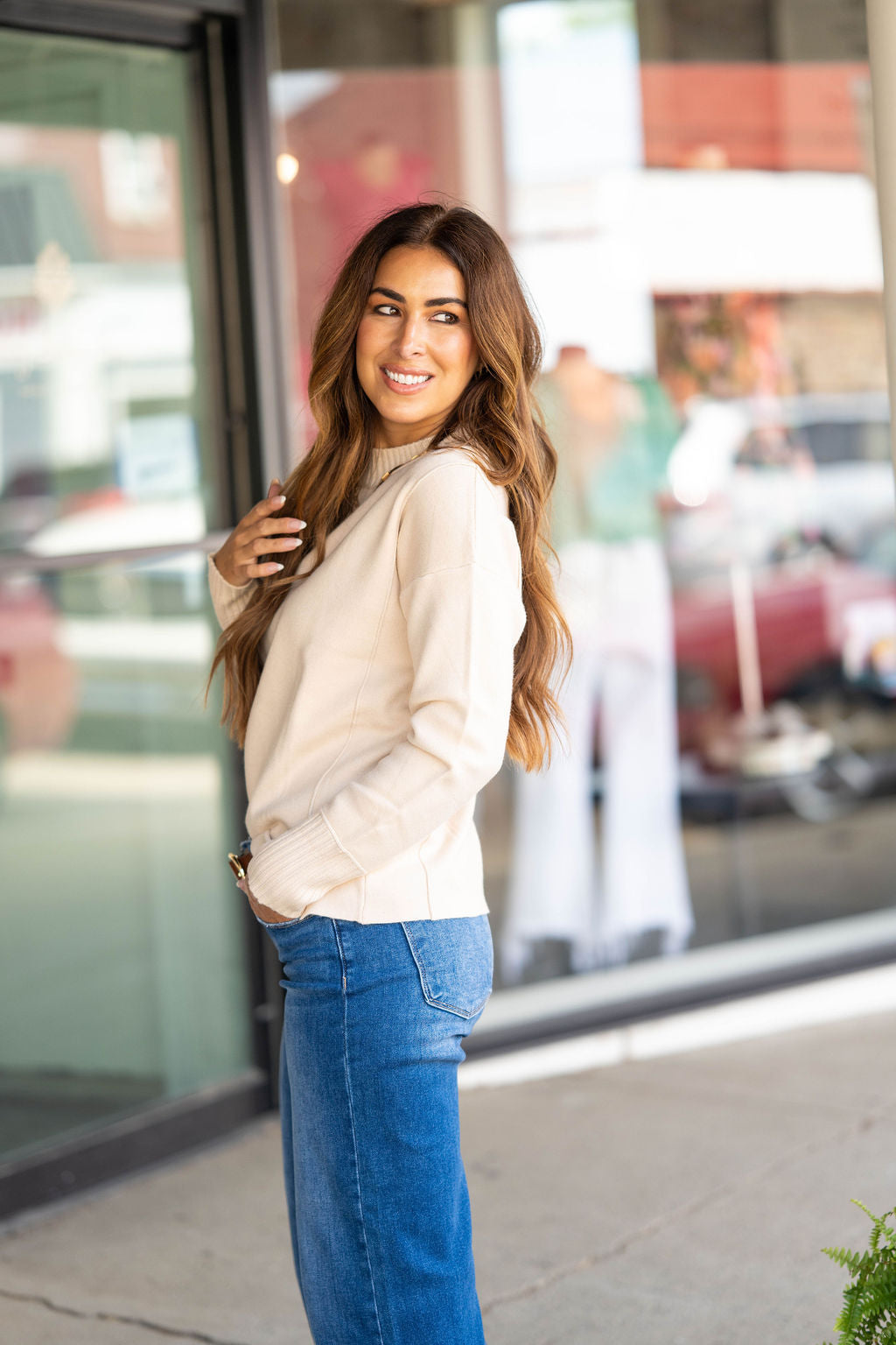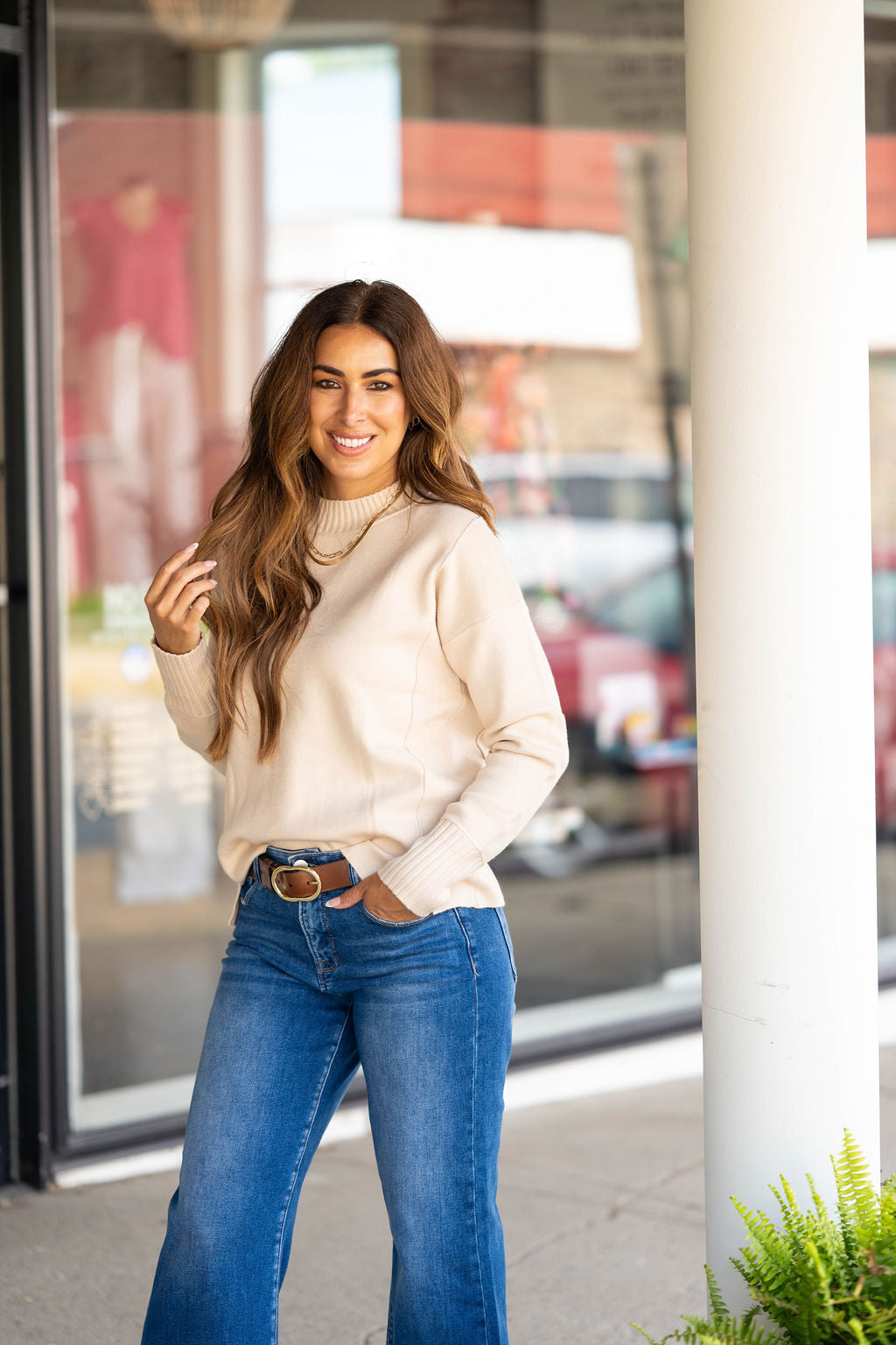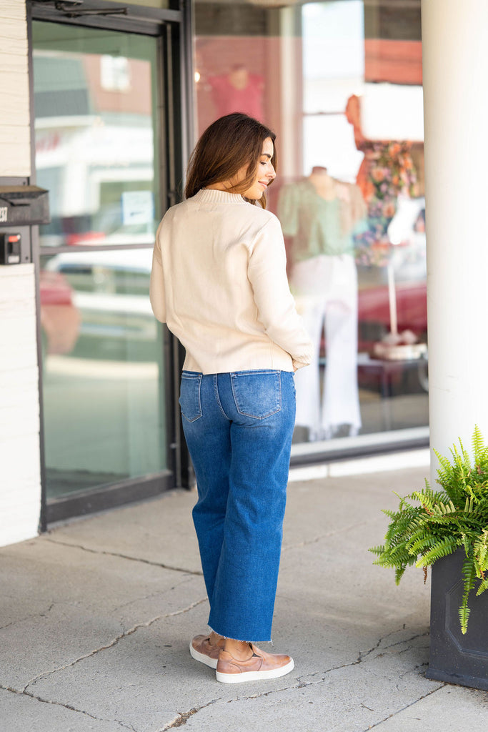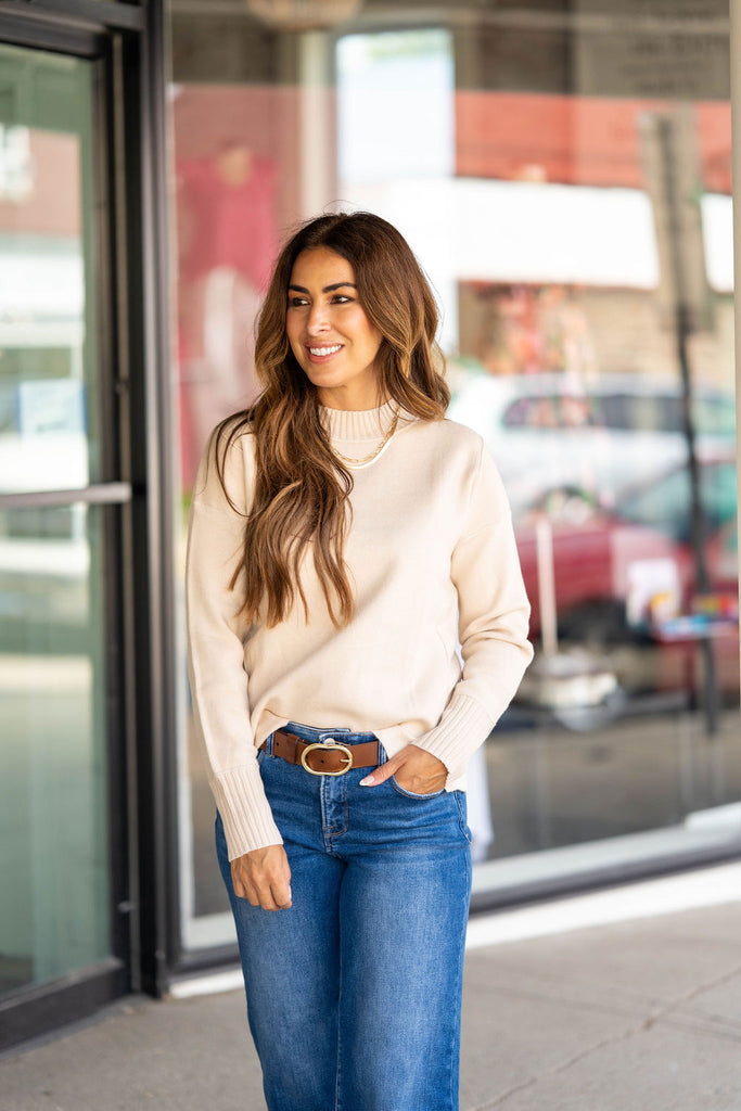 Sweater weather is upon us and we're in love with this one! The thick ribbed trim gives this simple sweater a chic feel! Pair this sweater with jeans, accessorize and add your favorite pair of shoes for a quick, stylish look! Chilly? Add a vest or jacket with ease!!