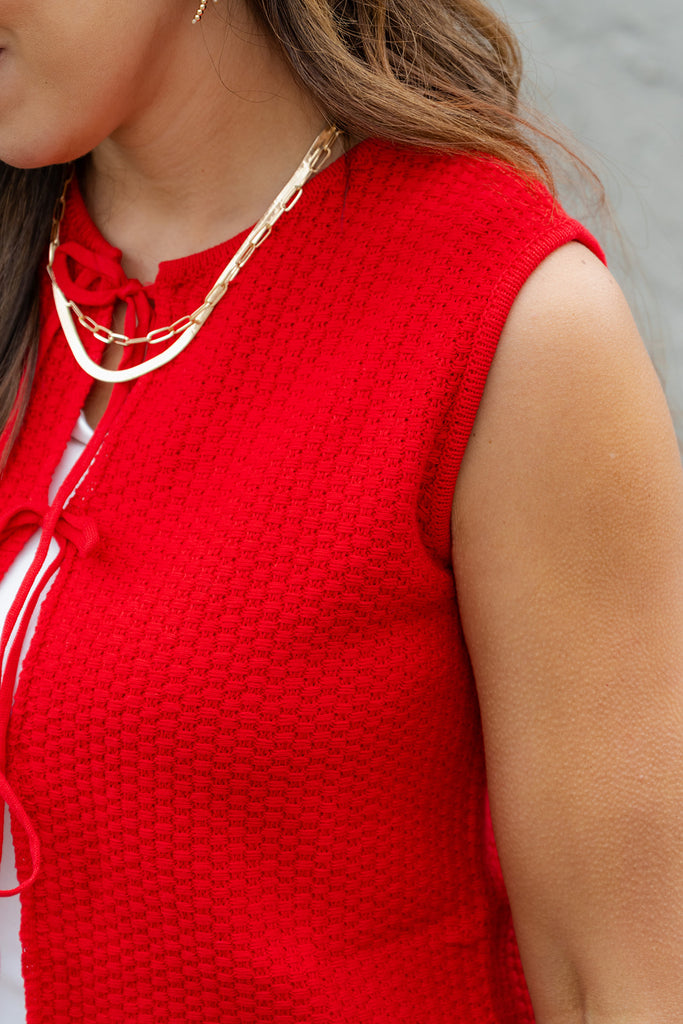 The woven material and tie front detailing of this vest have us swooning! Pair with a blouse, dress, basic tee or tank, long sleeve, anything! This is easy to dress up or down for everyday wear!