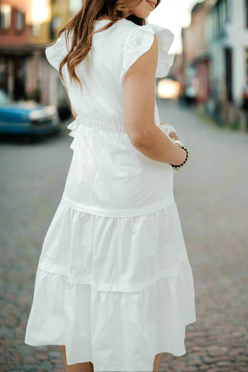 This is the perfect dress for any occasion. The midi length is appropriate for any event, and the lightweight material and flowy fit is great for any season. Wear on its own with the cute ruffle trim for the warmer months, or pair with a colored cardigan and a pair of booties for the cooler ones. We know how matter you wear this, you will make it fit your style!