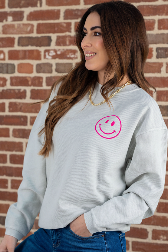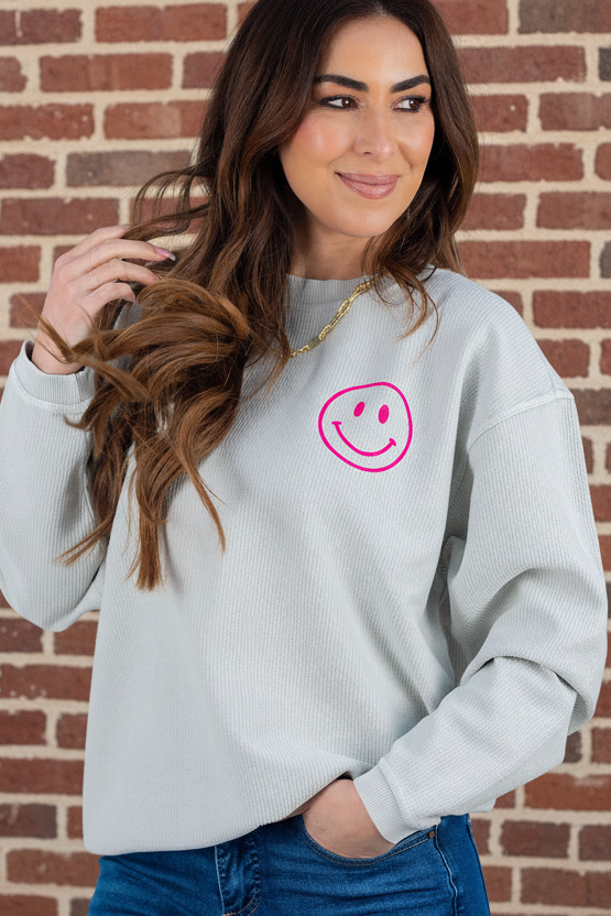 Our graphic crewnecks are already a fan favorite but with the elevated ribbed texture, this is a must-have! Throw on with shorts for a cute transitional look or with leggings, joggers, or denim in the cooler months!