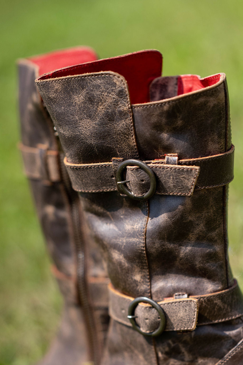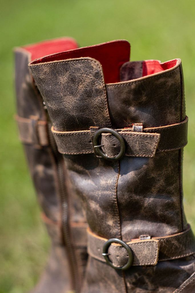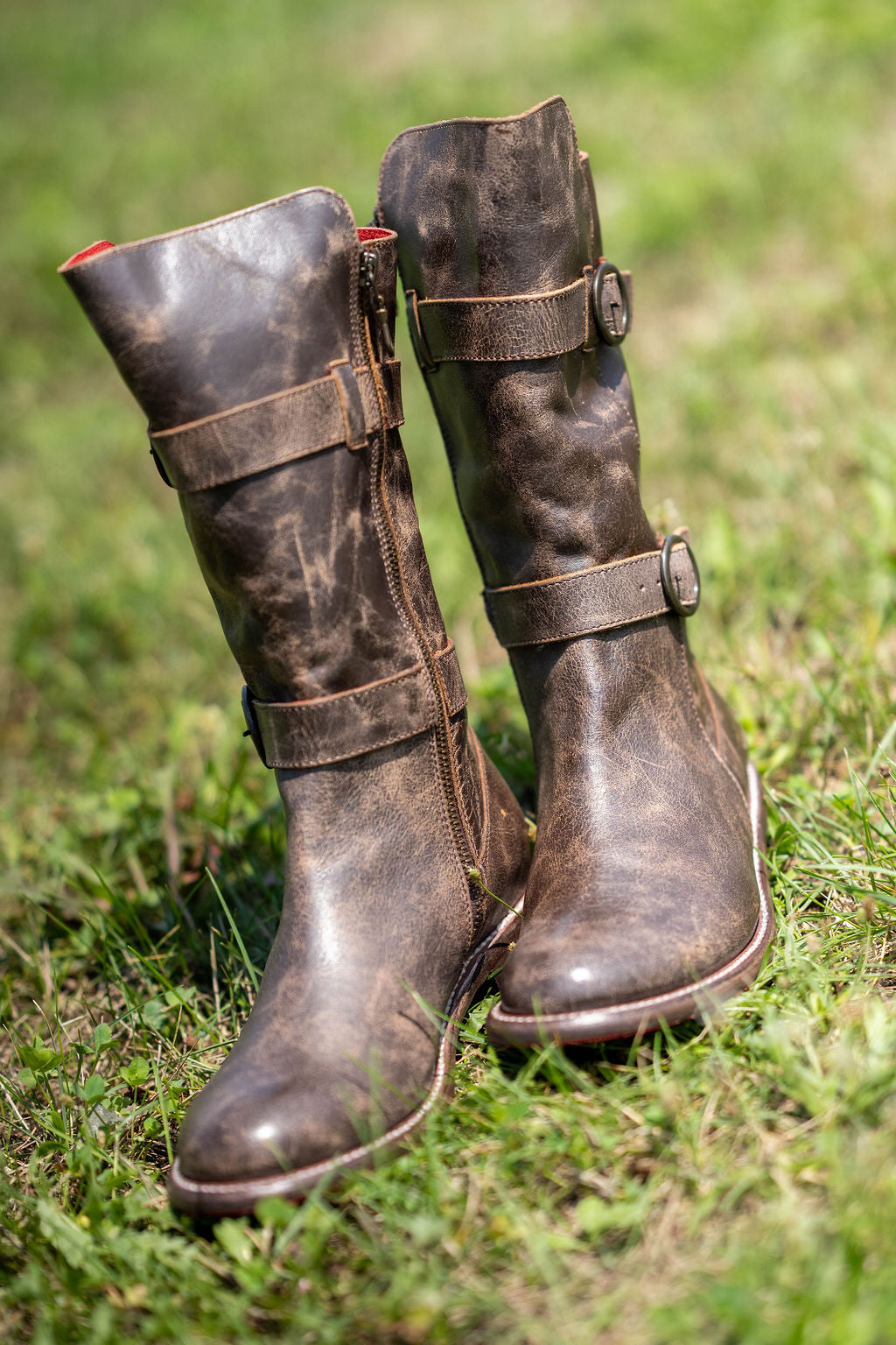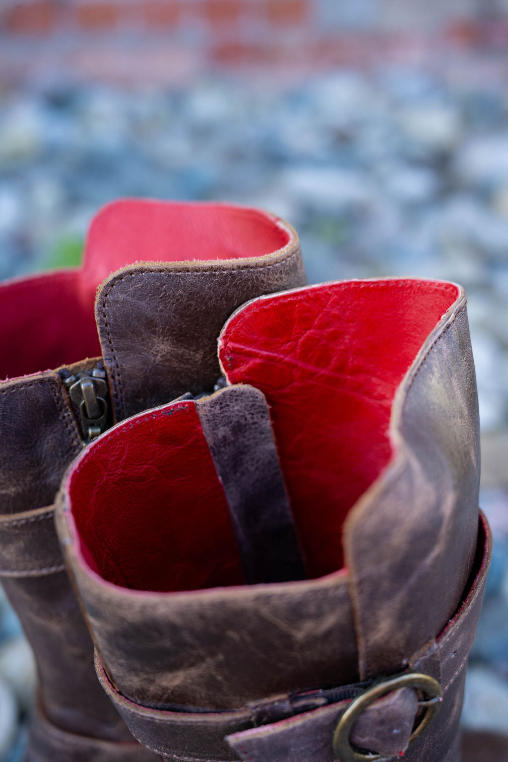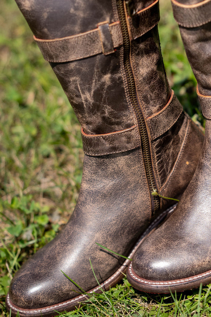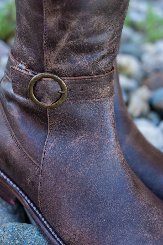 Meet Turn, crafted from chrome and formaldehyde-free vegetable-tanned leather. Featuring adjustable straps, a full inner zipper for easy access, and Goodyear welted construction, Turn offers style and functionality. With a durable leather and stamped rubber outsole, this boot combines a unique design with practicality.