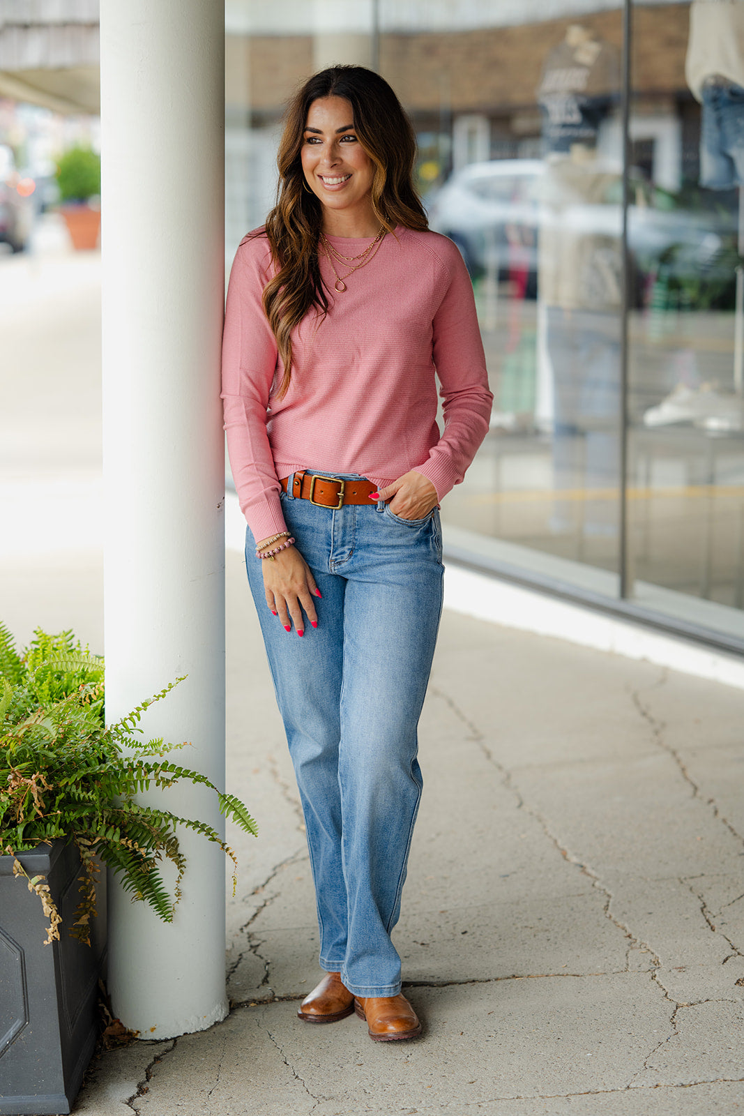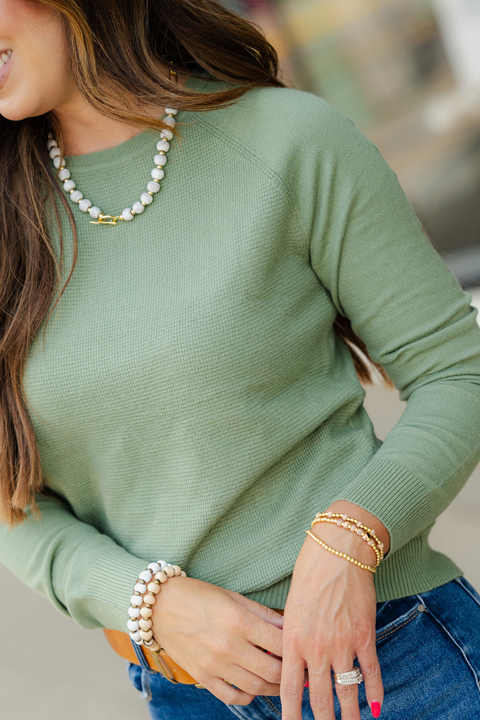 We're loving this soft and lightweight sweater! The waffled body against the solid sleeves make this a one-of-a-kind piece! Wear alone or layer with a vest or shacket! We love that this can be dressed up or down with your favorite accessories for wherever the day takes you!