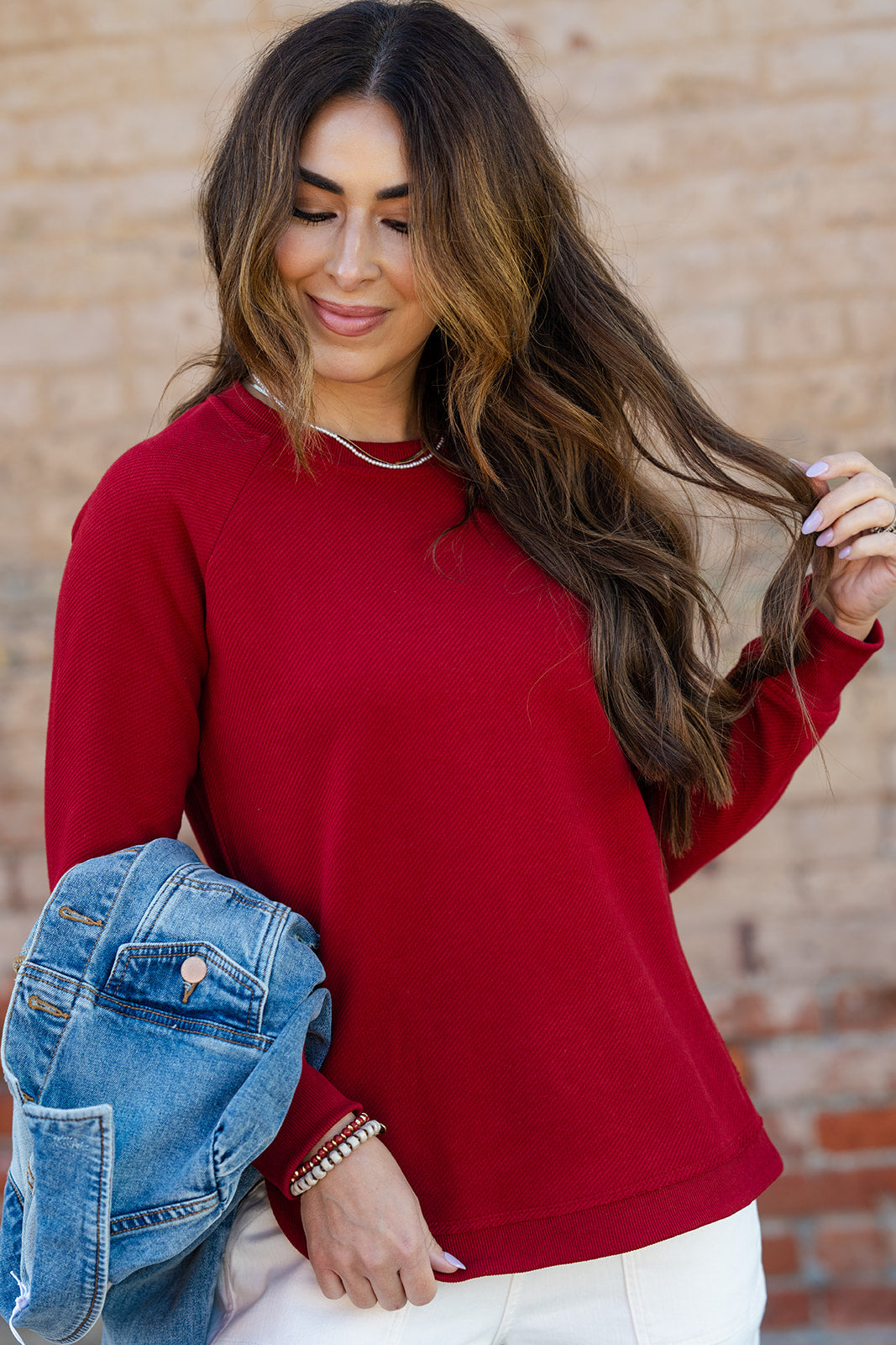 Comfort meets style in this waffled sweatshirt! The lightweight and soft waffled material gives a fun texture to any look, and the side slit detailing is perfect to pair with leggings, denim, or joggers! Chilly? Layer with a vest or shacket!